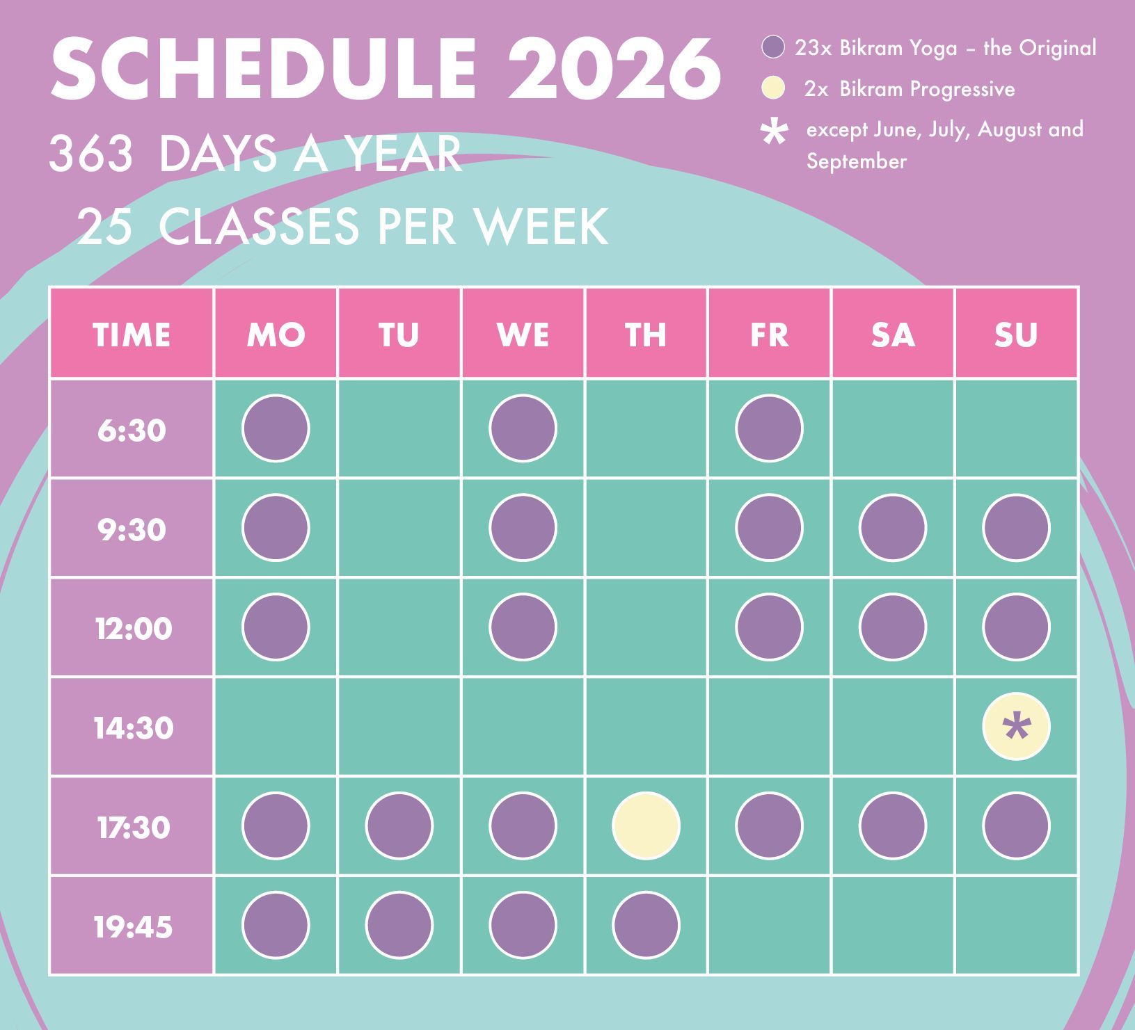 Eine festgelegte Serie aus 26 Posen, praktiziert in 90 Minuten bei 40°C und ca. 40% Luftfeuchtigkeit.